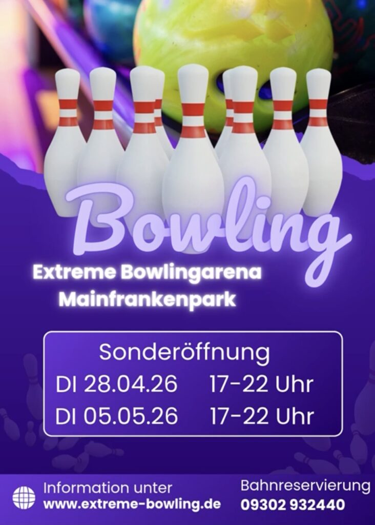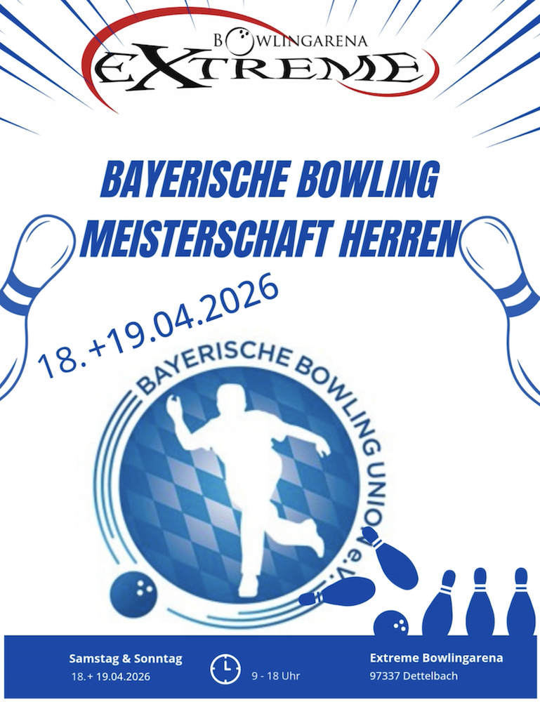 Am Samstag, den 18.04.2026, und Sonntag, den 19.04.2026, finden in der Extreme Bowling Arena im Mainfrankenpark die bayerischen Meisterschaften statt. 🎳