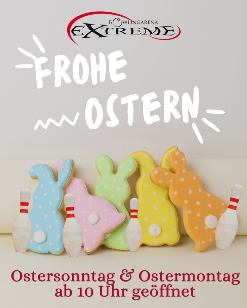 Die Extreme Bowlingarena wünscht frohe Ostern und lädt euch zu Spiel, Spaß und gemeinsamer Zeit mit Familie und Freunden ein.