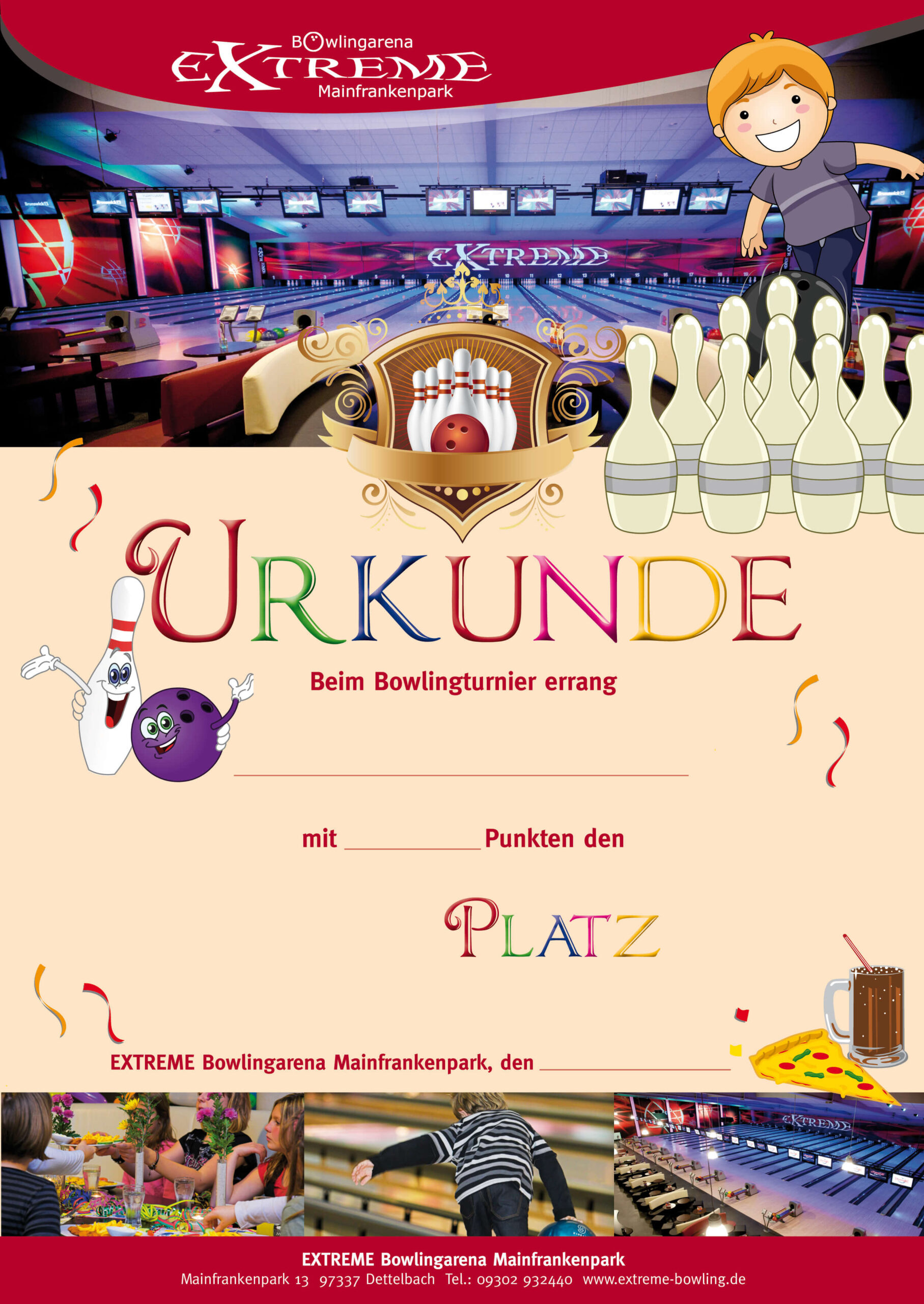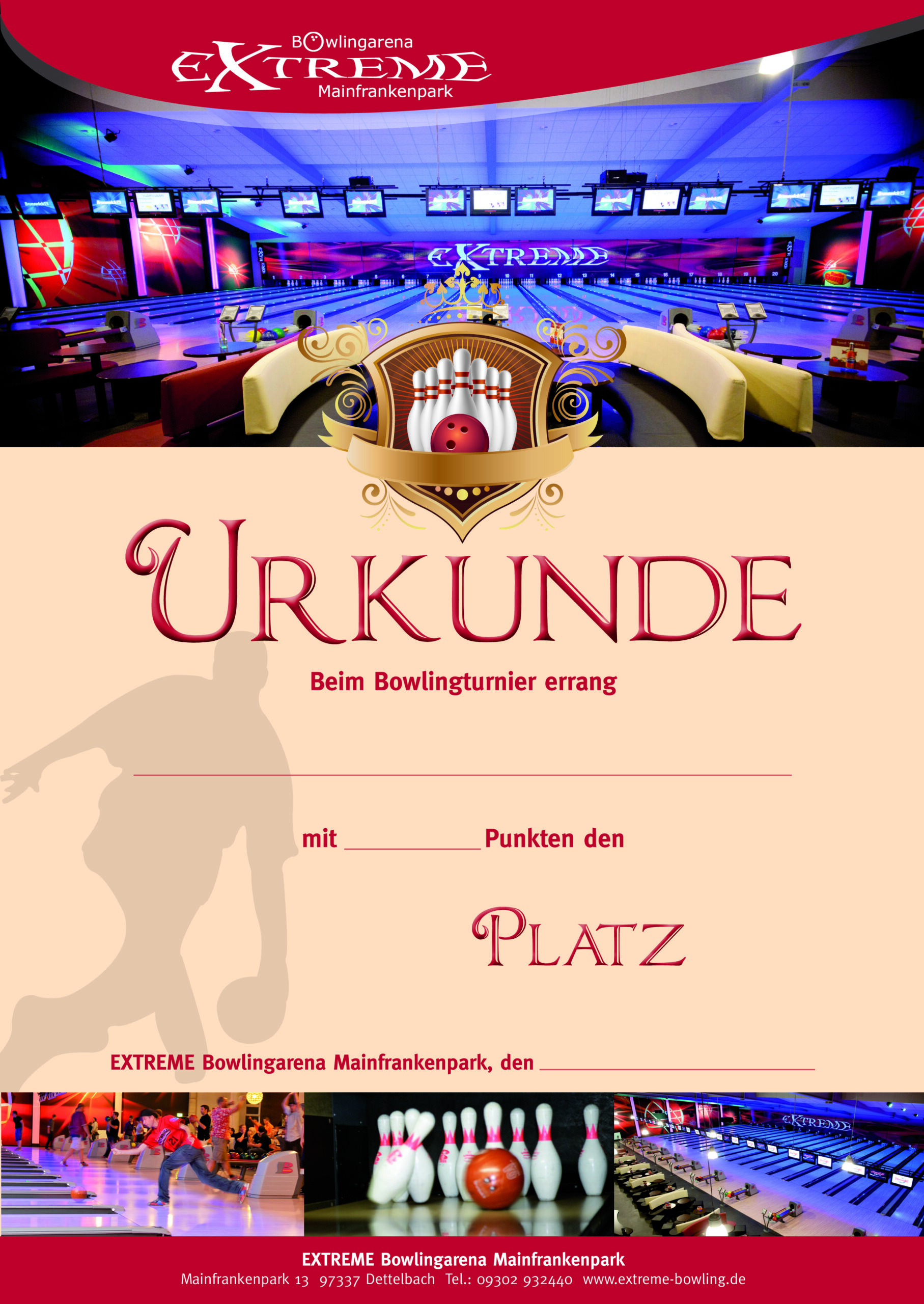 Ihnen stehen verschiedene Urkunden als Download zur Verfügung. Gerne können Sie auch diese auch kostenlos in der Bowlingarena mitnehmen, ausfüllen und bei der Siegerehrung verteilen.